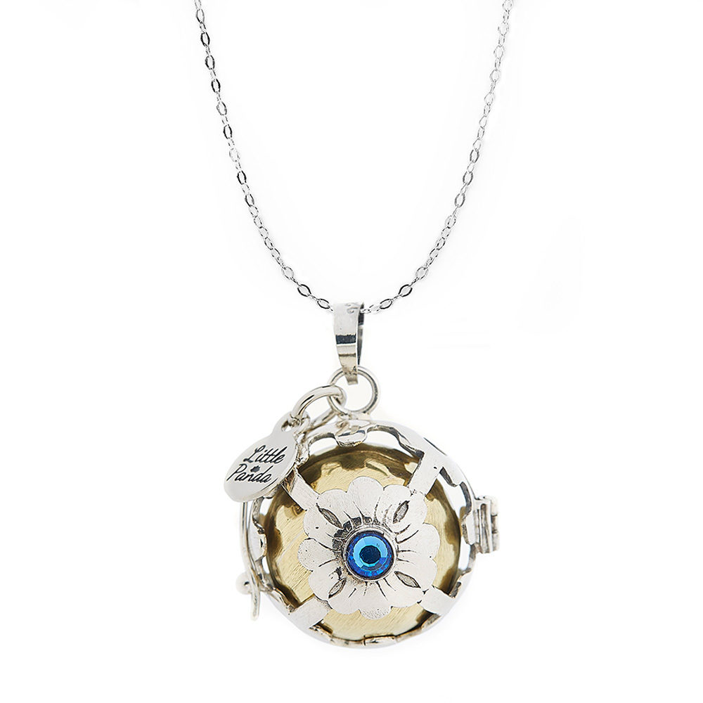 Le bleu intense de ce bola en argent est le symbole de la pureté des sentiments en Indonésie. Il vous apportera la zen attitude en mettant en valeur la beauté naturelle de votre joli ventre de femme enceinte.